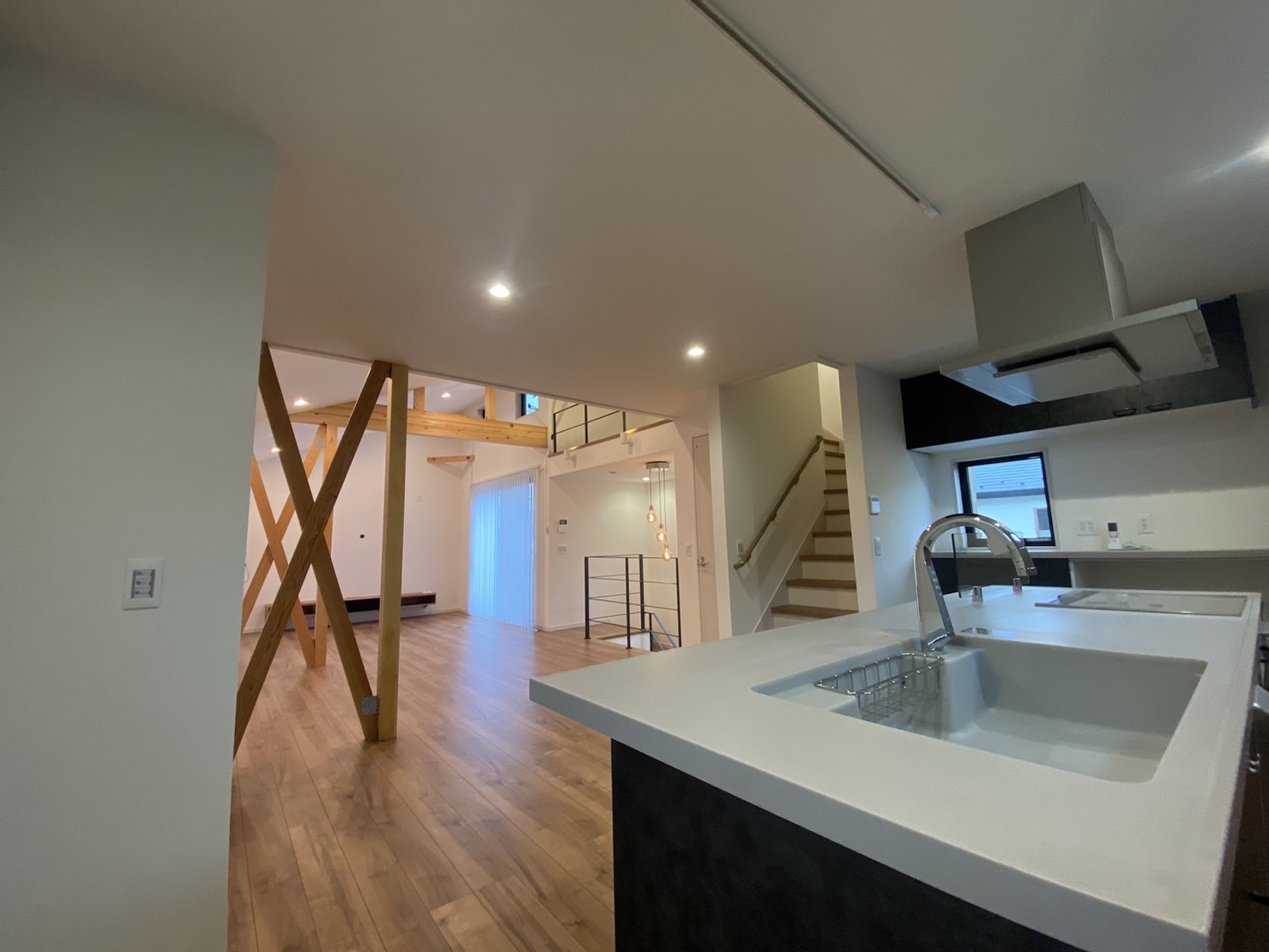 スケルトン階段と中庭のある開放的な設計に、プライベート感あふれる屋上を備えた住まい。明るいリビングや機能的なキッチン、落ち着いた洋室など、家族の暮らしを豊かにする工夫が随所に盛り込まれています。
