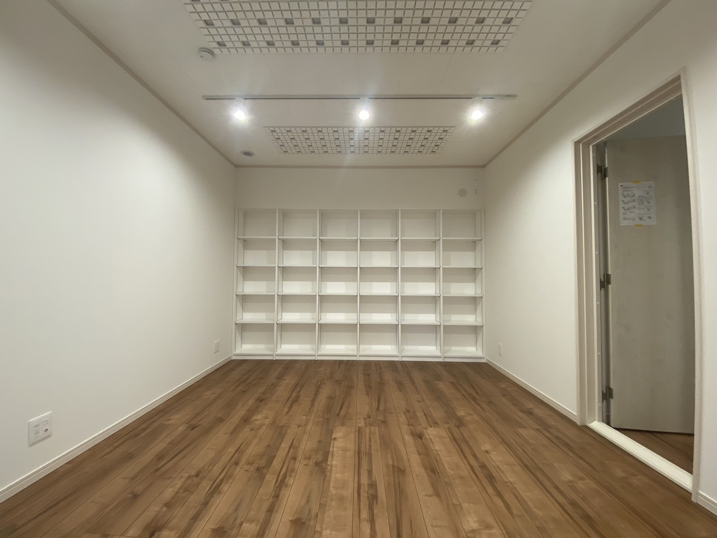 壁一面の収納棚は楽譜や本の整理にも便利で、静かに集中したい時間にもぴったりです。