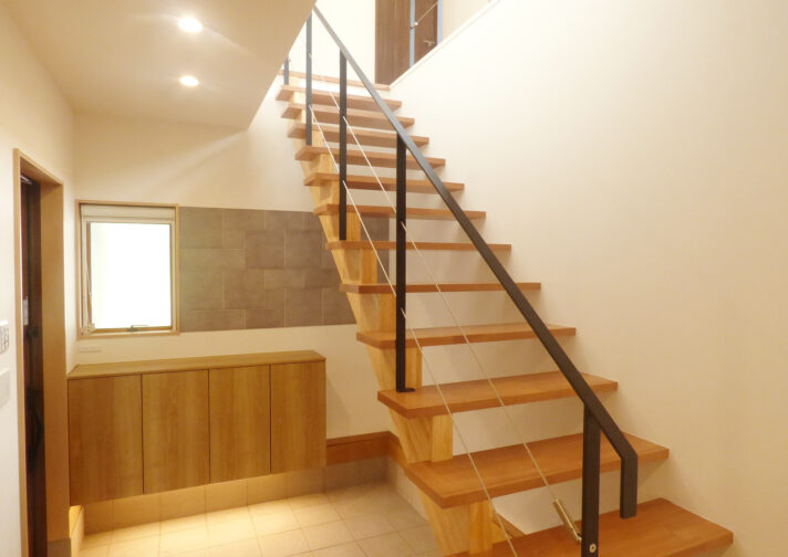 インナーガレージが完備されており、車から玄関までの移動が非常にスムーズです。ガレージと玄関が直結しているため、荷物の出し入れも快適で、無駄な動線を省いた設計が魅力です。また、玄関はフラットでシンプルかつ機能的なデザインが印象的です。誰にとっても使いやすい空間づくりを徹底しています。暮らしやすさを追求した工夫が随所に見られる玄関です。